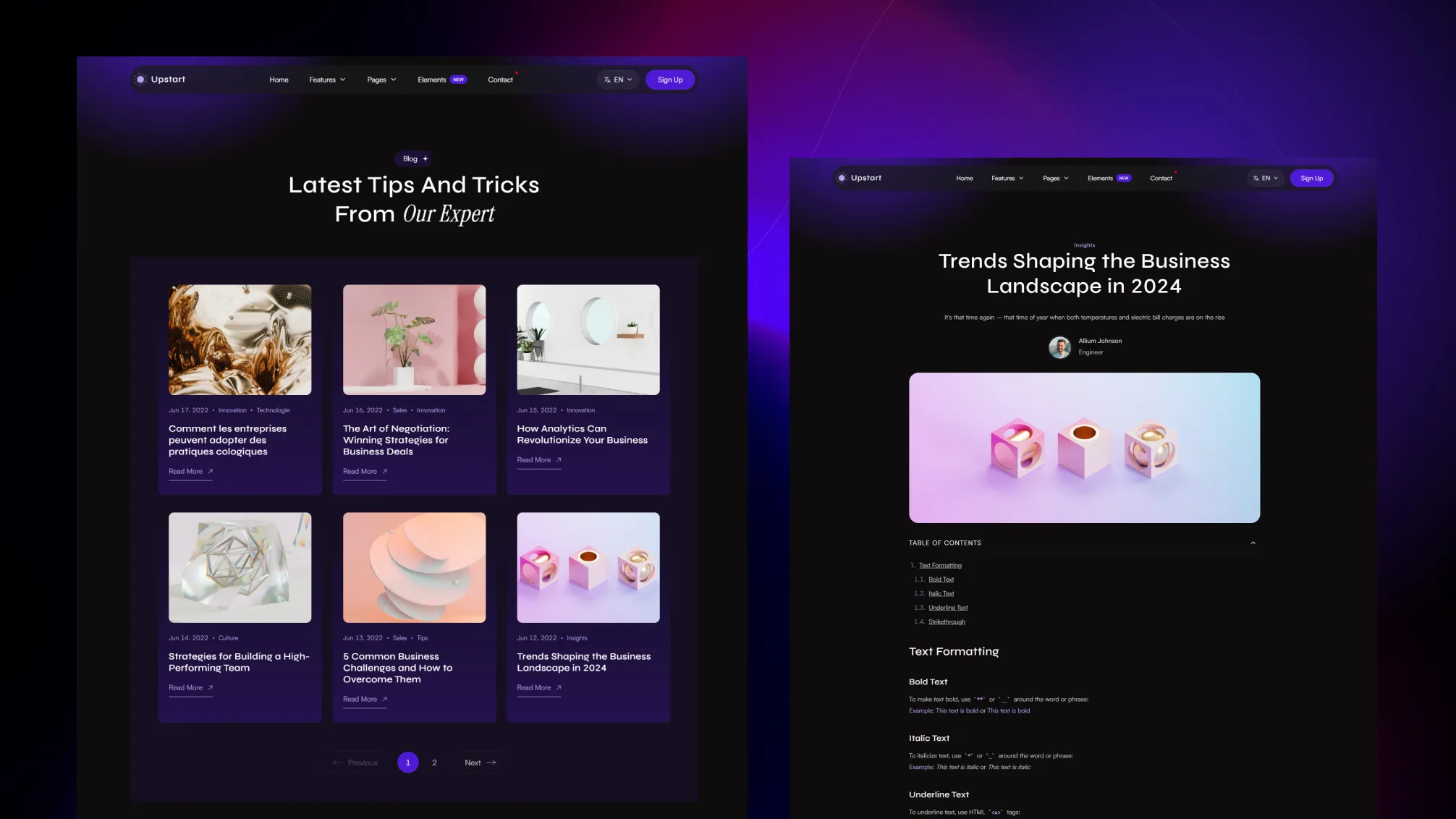 Elevate your SaaS or startup with Upstart, the ultimate Astro Js theme for modern businesses. With unparalleled customization options, full multilingual support, and cutting-edge SEO features, Upstart empowers you to create a visually stunning and high-converting website.